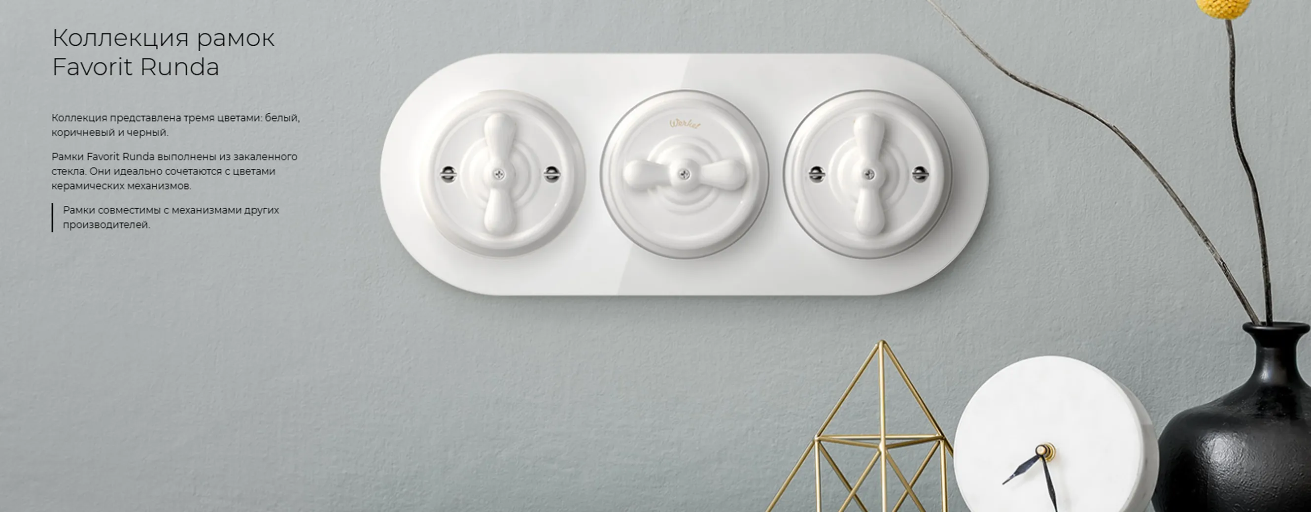 - Совместимость: Рамки Werkel совместимы с механизмами других брендов, что значительно расширяет ваши возможности при выборе комплектующих.