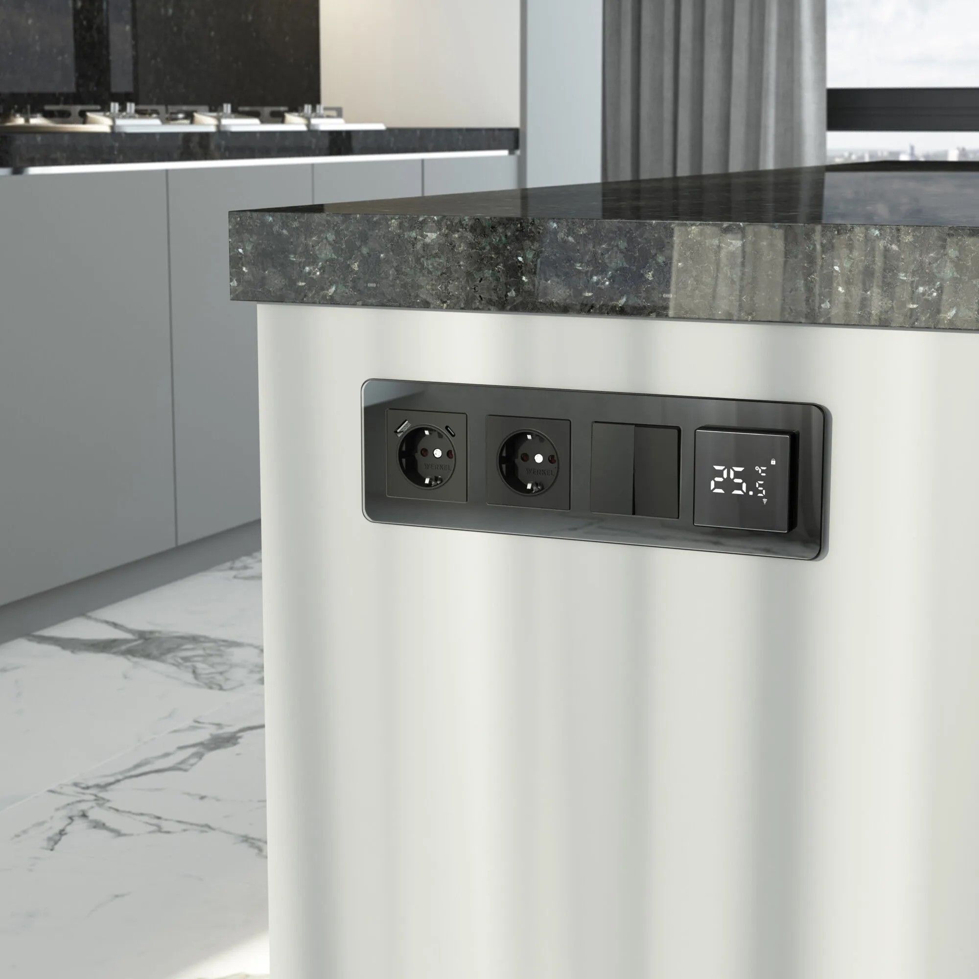 💡 Совет: Сочетайте Elite в чёрном с сенсорным терморегулятором Werkel — получится единый «умный пульт» для управления.